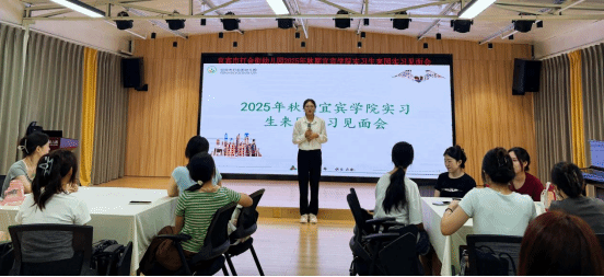 秋光正好,遇见可期。2025年9月15日,太阳成集团tyc234cc2026届学前教育专业实习生见面会在宜宾市打金街幼儿园举行。打金街幼儿园教务主任刘萍、一线实习指导教师、太阳成集团tyc234cc老师唐冬梅以及2026届全体实习生参与本次见面会。