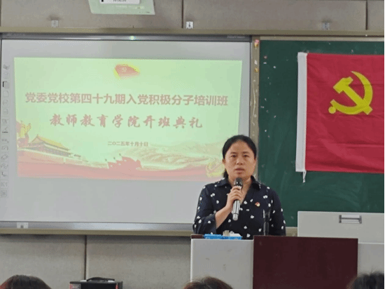 付蓉向全体学员们详细解读党校培训任务和课程安排,强调本次培训旨在帮助入党积极分子系统掌握党的创新理论,提升政治素养与思想觉悟。她希望学员们严格遵守培训纪律,做到学思用贯通、知信行统一。
